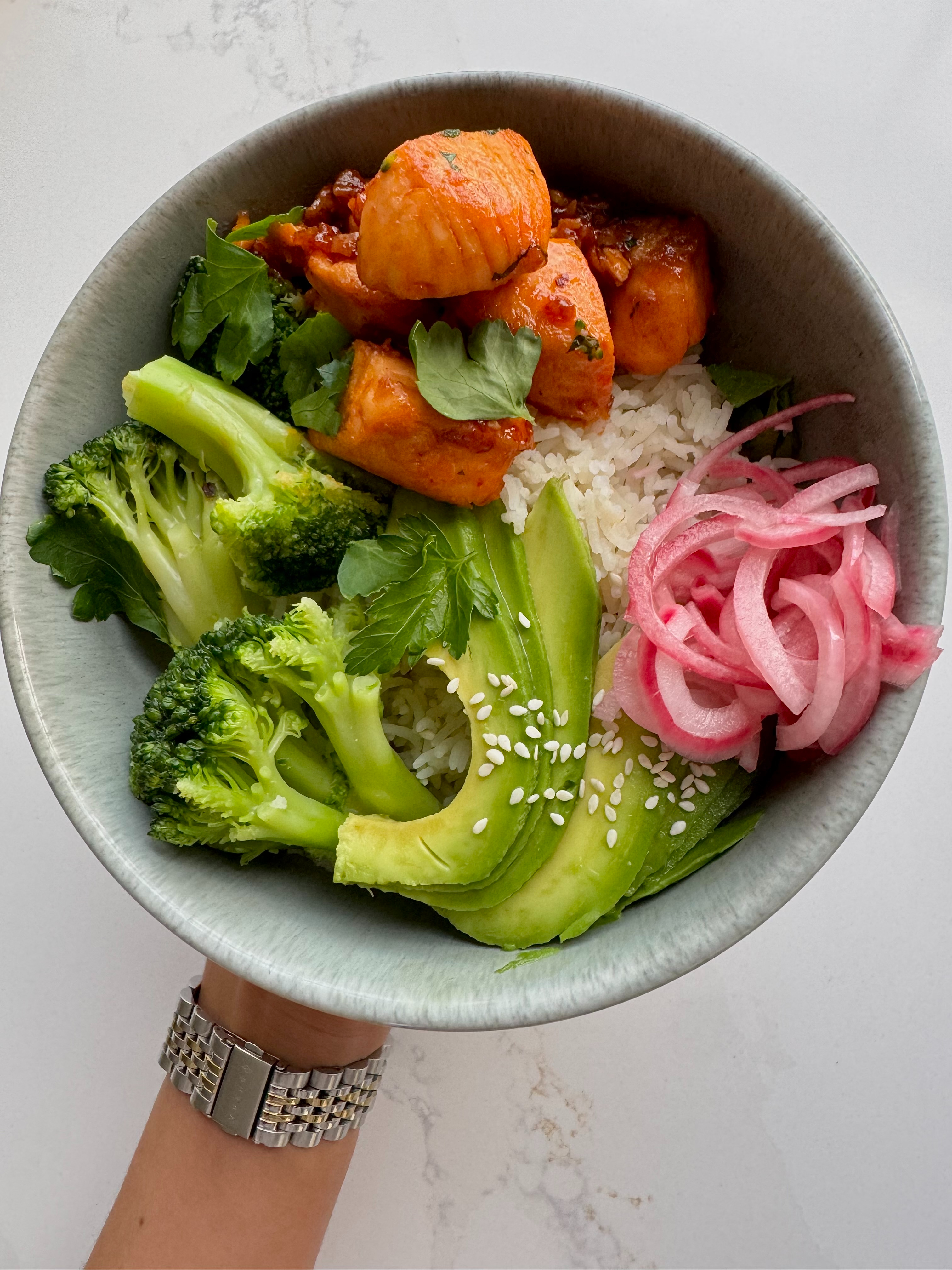 I’ll be sharing my go-to salmon bowl